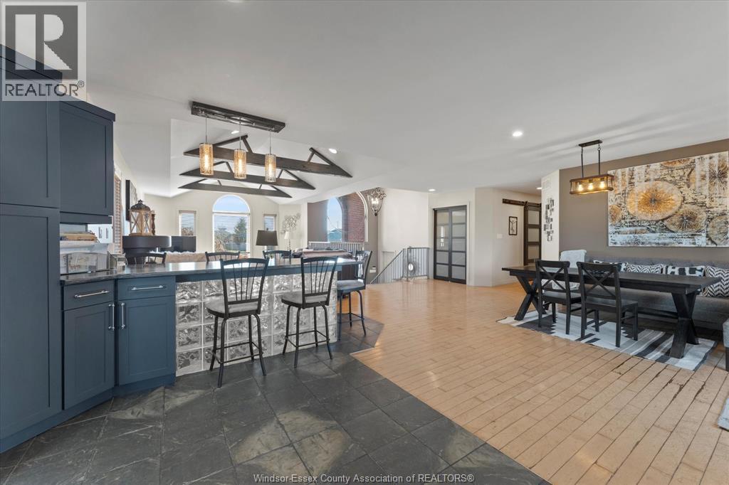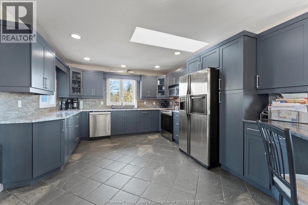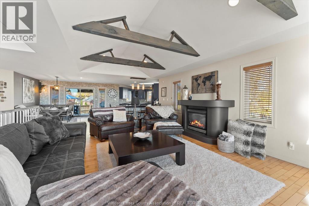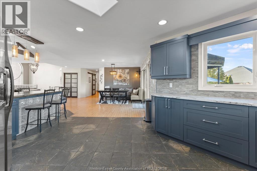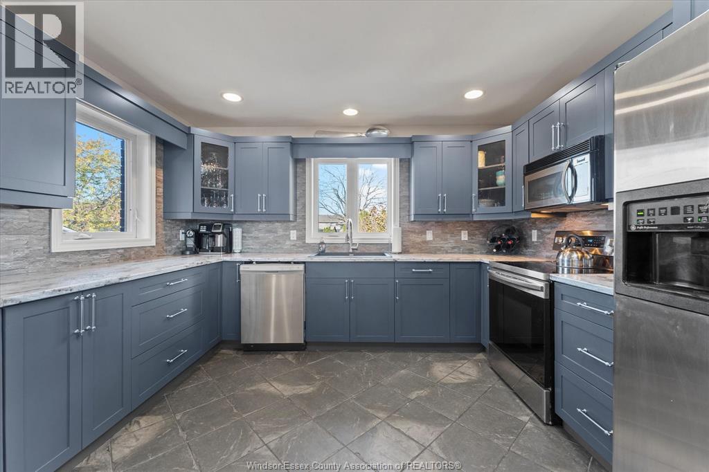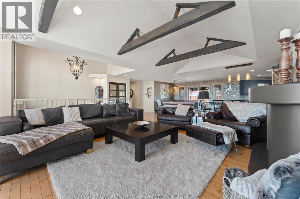 Beautiful extra large, brick to roof, raised ranch w/bonus room Primary Suite over large 2 car garage. Truly amazing fully fenced rear yard for the family or entertainers dream. Located in sought-after area of Lakeshore near schools, lake & all conveniences. This unique home boasts a modern open concept design w/newly updated kitchen cabinets, large farm sink, glass block XL kitchen Peninsula breakfast island, living room w/vaulted ceiling, accent beams, gas fireplace & skylight. The home is very tastefully decorated w/stainless railings throughout, easy roll barn doors & more. Main floor features two bedrooms & a renovated bath, living room/dining room & a big walk-in pantry. Bonus area upstairs features a large primary suite, walk-in closet, four piece bath w/Jacuzzi tub & corner shower. Downstairs features two more bedrooms, a three-piece bath, a full living & dining room plus a 2nd full kitchen with another set of appliances (10 in total with this lovely home). Perfect for a mother-in-law suite, an apartment for growing children or rental income. Lower level has its own grade entrance from garage. This home also includes a beautiful indoor cedar sauna for relaxing & unwinding after a long day. Outside has a hot tub, and a pool with a brand new winter cover (pool is in 'as is' condition - needs new liner). Huge 2 tier deck out back with an outdoor bar and new awning. Beautifully landscaped front and rear yards and incredibly private large pie shaped lot. Priced to Sell! (id:4555)