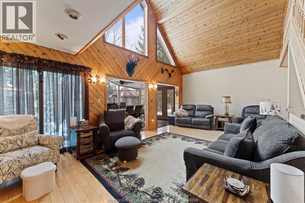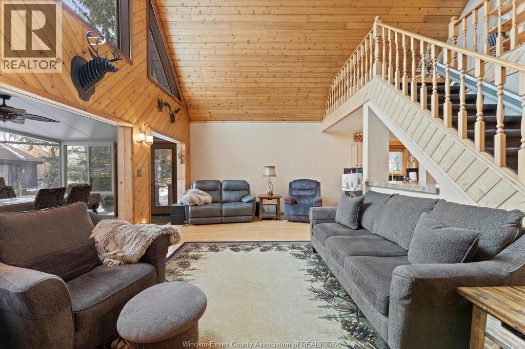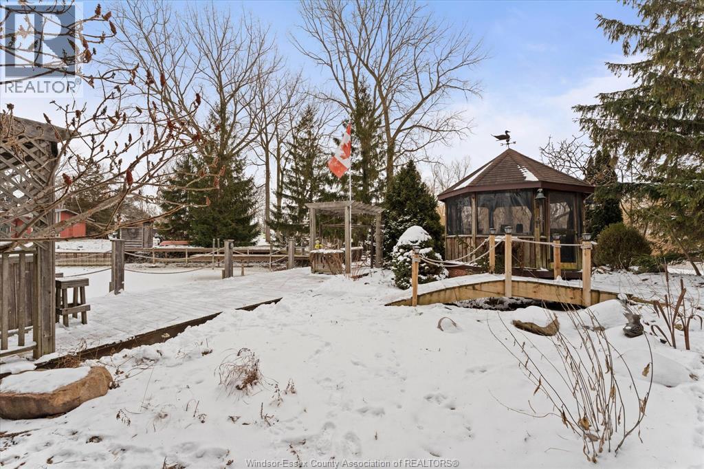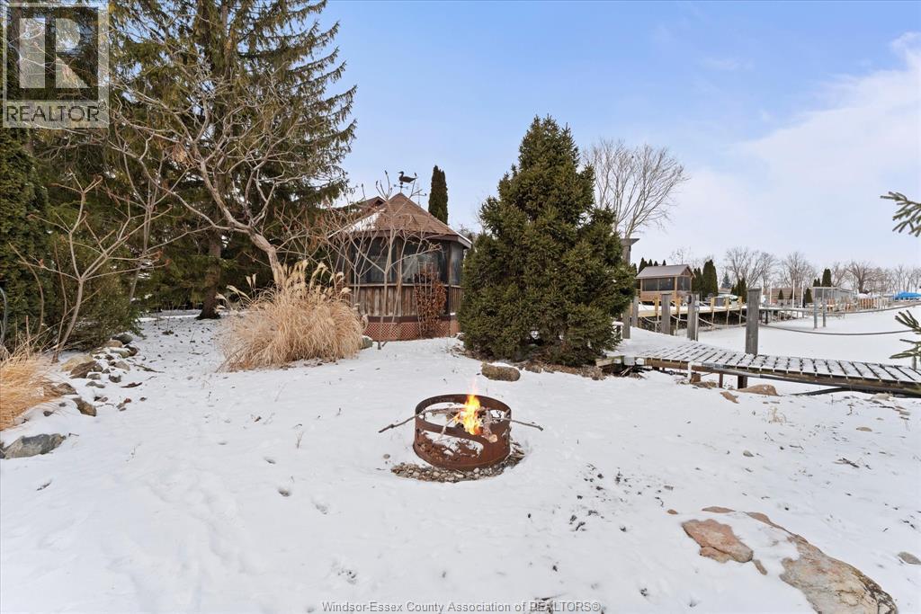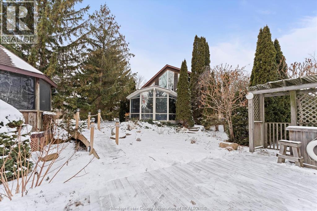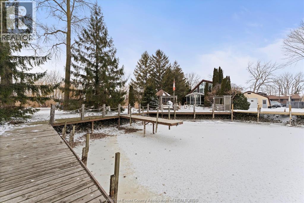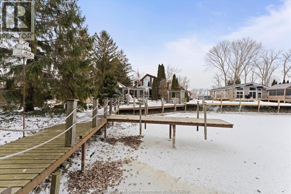 Quait community nestles on the shores of Lake St. Clair with water way to the Thames River. This 2 storey cedar plank home has been lovingly maintained. The 2nd level features the primary bedroom, 2nd bedroom, 4pc bath & possible 3rd loft bedroom. The 6' glass window opens to a view of mature trees, landscaped gardens, gazebo & water. The main floor boasts of the spacious family room with fireplace, gleaming hardwood floors & opens to the window walled octagon shaped dining room. The docks have been maintained, have hydro for boats & yard lighting. The gazebo also has hydro, window screens & roll down windows so you can enjoy the views even in the summer rain. The spacious kitchen features a cozy breakfast nook, polished concrete coloured flooring & counters. Also on the main floor is a beautiful 2nd 4pc bath with a 5 x 5 glass shower & unique rare petrified wood sink. The front foyer features lots of closets, pantry double patio doors to the secluded BBQ area and patio. The single care garage has inside entry plus entry to the lighted 4' high insulated stone floor crawl space. THIS IS A TRADITIONAL LISTING OFFERS TO BE PRESENTED UPON RECEIPT. SEE DOCUMENTS FOR LIST OF UPGRADES (id:4555)