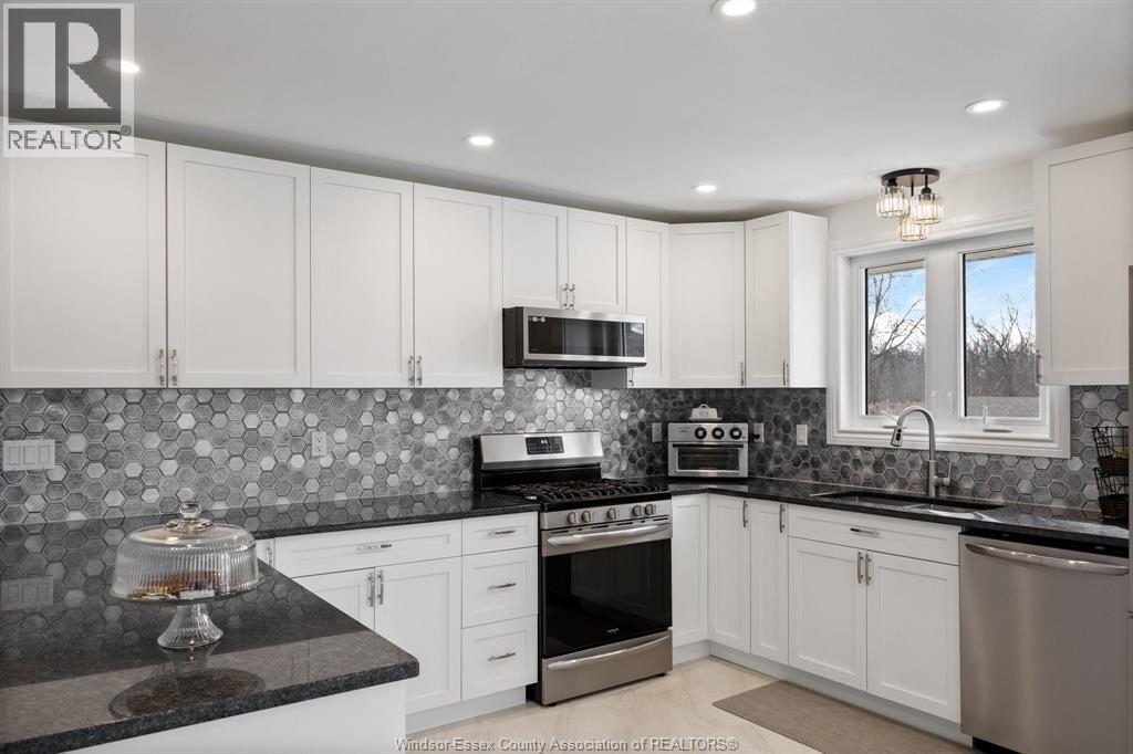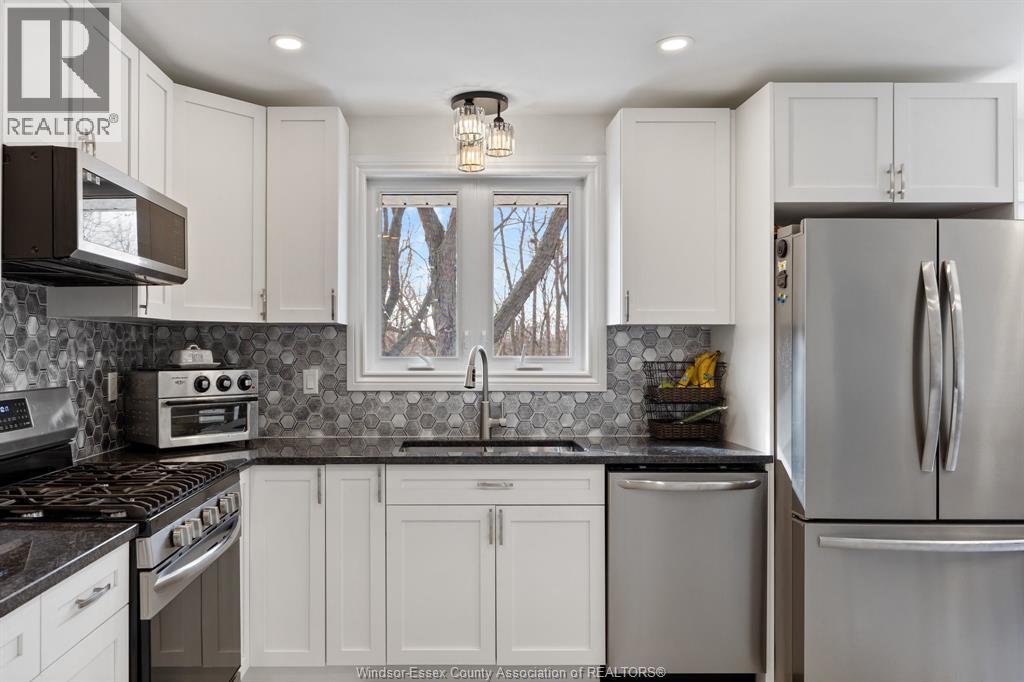 RELAX AND VACATION AT HOME IN THIS SPRAWLING BRICK TO ROOF RANCH SITUATED ON JUST UNDER 1 ACRE PEACEFUL AND QUIET CUL-DE-SAC ROAD FEATURING AN OVERSIZED BRIGHT LIVING ROOM, GORGEOUS WRAPAROUND GRANITE, CERAMIC AND STAINLESS ACCENTED KITCHEN (2026) WITH SEPARATE DINING AREA, DOUBLE GARDEN DOORS TO PRIVATE PATIO, 3 GENEROUS SIZED BEDROOMS, 2 RENOVATED BATHROOMS (2025) LOWER LEVEL FAMILY ROOM (2022) OFFICE/DEN, BONUS INDOOR SWIMMING POOL (2024) WITH SPA SIZED SAUNA AND SEPARATE WASHROOM, MULTIPLE WINDOWS PLUS PATIO DOORS (2025) LEAD TO A CUSTOM LOUNGING DECK OVERLOOKING A BREATHTAKING MANICURED TREED YARD BACKING ONTO THE RUSCOM RIVER AND PARKLAND WITH ACCESS TO WALKING TRAILS IN THE MEMORIAL PARK, 2 1/2 CAR GARAGE WITH SEPARATE TOOL ROOM, DOUBLE WIDE CEMENT DRIVE WITH EXTRA SIDE PARKING PAD (2023) FORCED AIR GAS FURNACE (2022) CENTRAL AIR, HARDWOOD FLOORS, MAIN FLOOR LAUNDRY, APPLIANCES INCLUDED, VINYL REPLACEMENT WINDOWS AND DOORS (2023, 2025) COUNTY LIVING WITH EASY ACCESS TO WINDSOR FROM HWY 401 OR COUNTY ROAD 42 (id:4555)